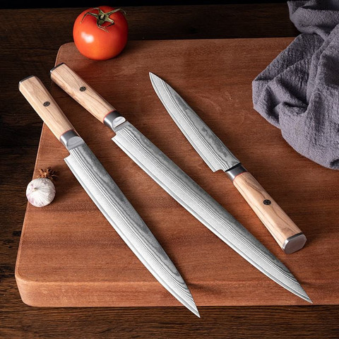 Damascus AUS-10 Steel Kitchen Chef Filleting Knives sharp Japanese Fish Fillet Knives Sashimi Sushi Sakimura Knife Wood Handle
